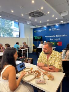 Durante o evento, participamos de rodadas de negociação com lojistas e distribuidores de Portugal, Reino Unido, Alemanha e França. Foi uma oportunidade valiosa de apresentar nosso trabalho a players internacionais e reforçar o que nos diferencia: somos uma empresa de profissionais criativos, comprometidos e apaixonados por traduzir a alma brasileira em cada detalhe.